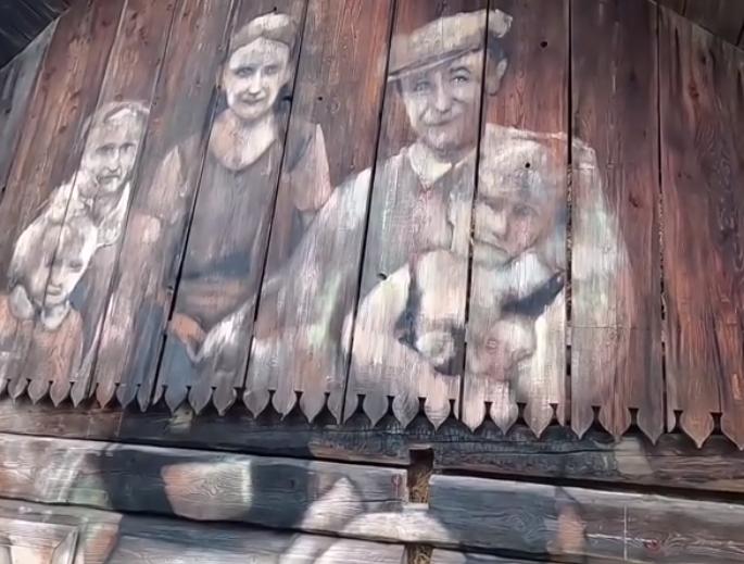 Kolejny obraz w ramach projektu Cichy Memoriał zrealizowany na obiekcie, który pełni teraz funkcję stodoły. W czasach wojny był to budynek mieszkalny, który został spalony prawdopodobnie przez bandy UPA, a następnie odbudowany z elementów, które nie uległy całkowitemu zniszczeniu.