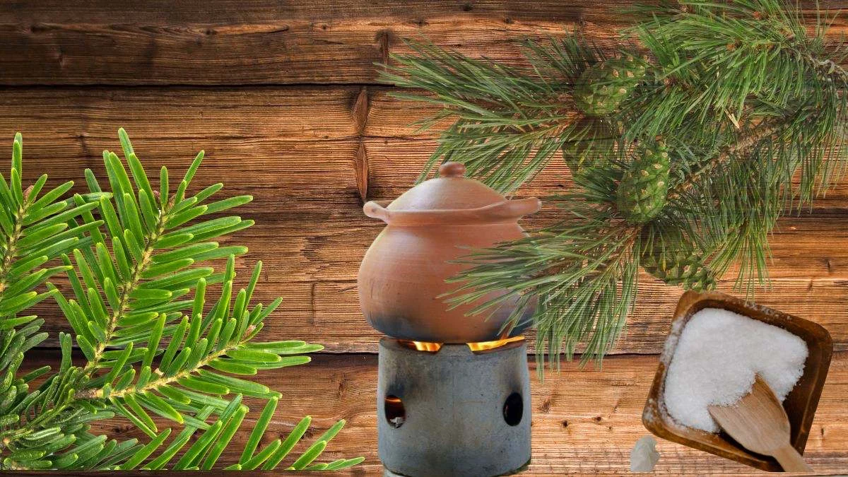 - Przygotuj leśny napar – zagotuj wodę w garnku i dodaj kilka gałązek igliwia, najlepiej świerkowego lub sosnowego.