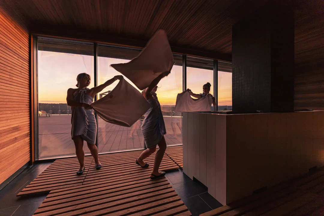 - sauna panoramiczna – duża, przeszklona sauna fińska, z której można podziwiać przepiękne zachody słońca