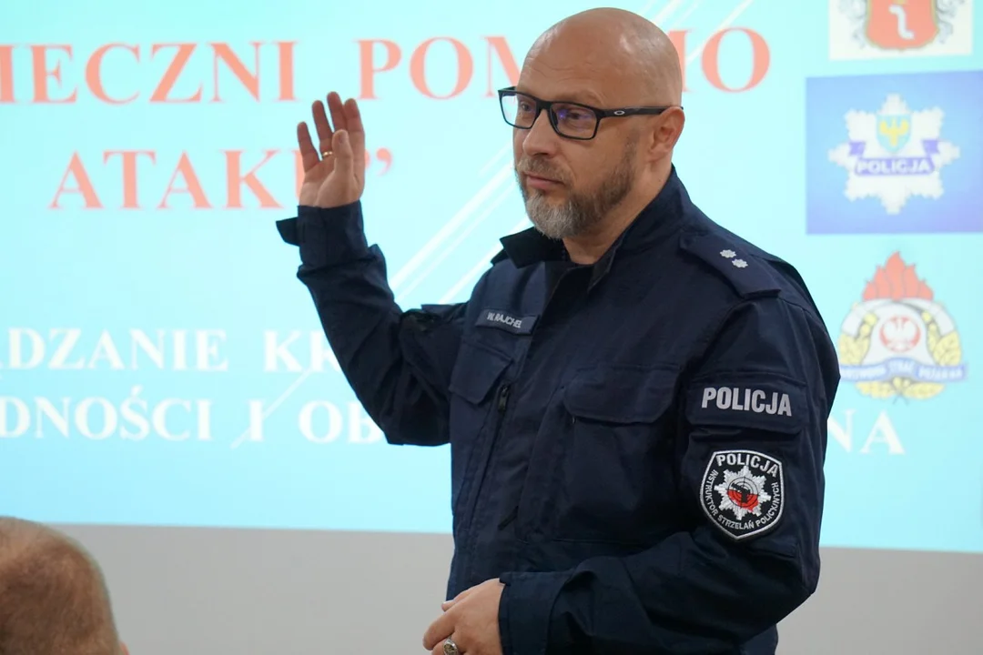 W dalszej części omówił również zakres działań realizowanych w ramach ochrony ludności – od ewakuacji i udzielania pomocy medycznej, po informowanie społeczeństwa i organizację schronień. Wskazał, że kluczową rolę w tych działaniach odgrywają służby mundurowe – straż pożarna, policja, ratownicy medyczni, wojsko i wolontariusze.