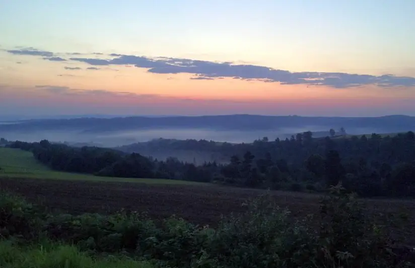 Kilka kilometrów przed Birczą (jadąc w stronę Przemyśla) można zobaczyć takie świtanie. I mgły ścielące się w dolinach. Czyż nie warto się zatrzymać i podziwiać?