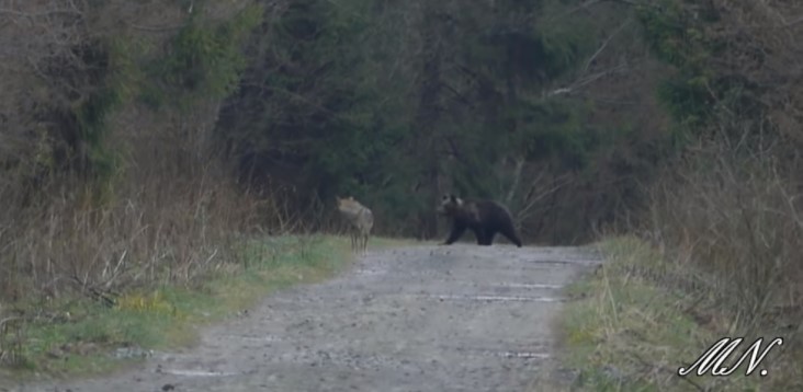 To niecodzienne spotkanie udało się uwiecznić Mariuszowi Nędzyńskiemu - bieszczadzkiemu YouTuberowi, który na co dzień pracuje w Nadleśnictwie Stuposiany (powiat bieszczadzki), więc w czasie swojej pracy często spotyka różne zwierzęta żyjące głęboko w bieszczadzkich lasach. Na tym samym filmiku, Panu Mariuszowi udało się uchwycić również żubra.