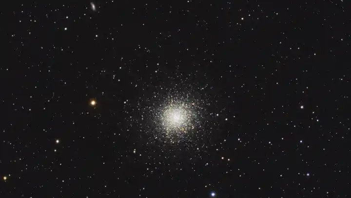 M13 to najpiękniejsza gromada kulista północnego nieba. Odkrył ją Edmond Halley w 1714 roku. Pod ciemnym niebem można ją dostrzec gołym okiem jako ciemną, małą plamkę, ale dopiero w średniej wielkości teleskopie można z łatwością rozdzielić setki gwiazd tej gromady.