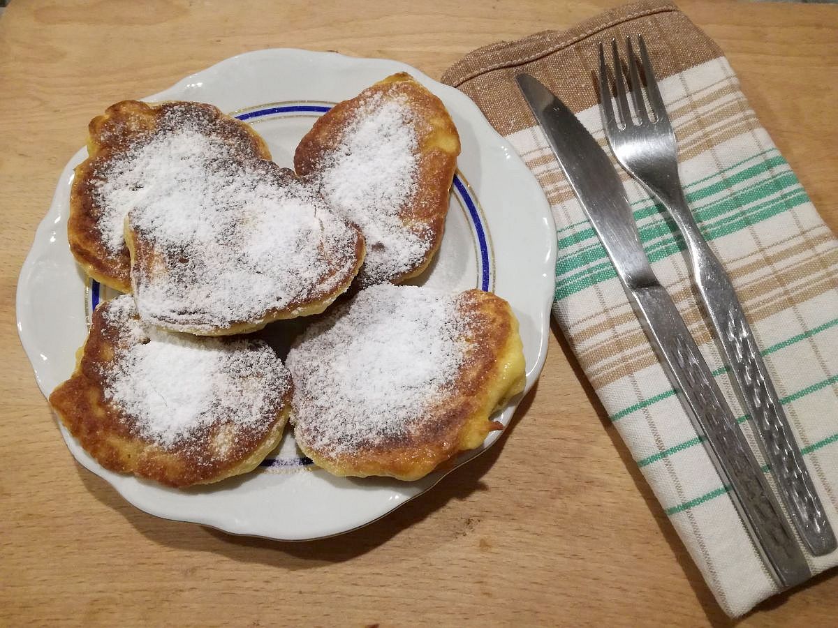 Na patelni rozgrzewamy olej i łyżką kładziemy niewielkie racuszki, dodatkowo je spłaszczając. Smażymy na średnim ogniu z obu stron, aż się ładnie zarumienią. Po usmażeniu można je wyłożyć na ręcznik papierowy, żeby odsączyć nadmiar oleju.