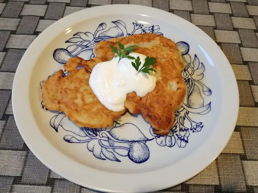 Na patelni rozgrzać olej i nakładać łyżką porcje ciasta. Placki smażyć po 3 - 4 minuty z każdej strony. Usmażone placki odsączć z tłuszczu na papierowym ręczniku.