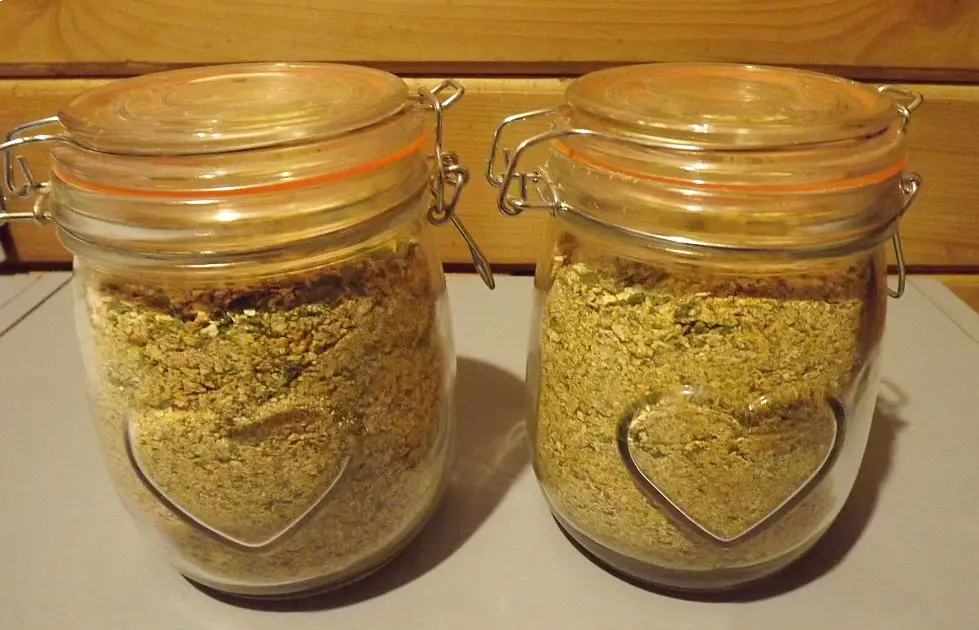 Warzywa kroimy na cienkie plasterki i suszymy w suszarce do grzybów. Możemy też je zetrzeć na dużych oczkach i suszyć w piekarniku. "Zieleninę" również suszymy. Po wysuszeniu mielimy wszystko w malakserze lub młynku do odpowiedniej dla nas konsystencji. Dodajemy kurkumę i sól. Wszystko dokładnie mieszamy i przekładamy do szczelnie zamykanych słoiczków. Przechowujemy w ciemnym miejscu.