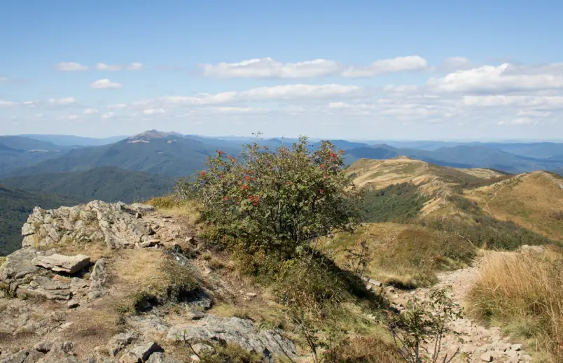 Kiedy znajdziemy się na szczycie Bukowego Berda ukaże się naszym oczom jedna z najpiękniejszych panoram. Warto spędzić tam co najmniej kilka chwil, aby nacieszyć się tymi widokami.