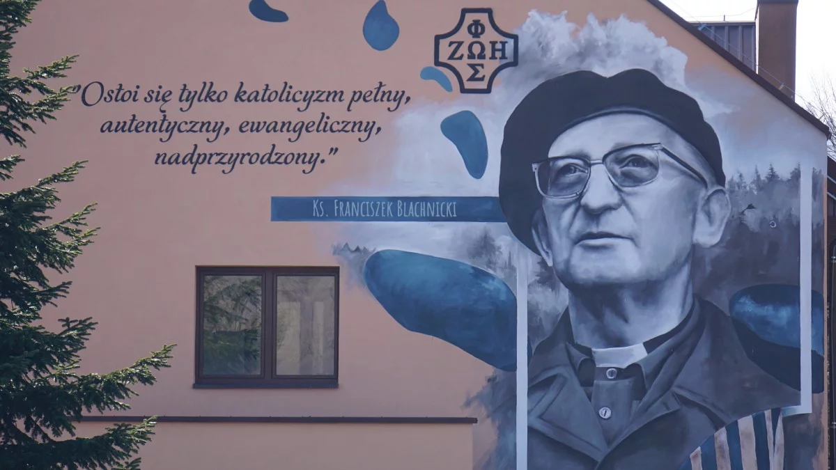 Na głównej ścianie szczytowej Domu Rekolekcyjnego w Rzepedzi, w gminie Komańcza, pojawił się mural przedstawiający wizerunek księdza Franciszka Blachnickiego. Obok portretu umieszczono słowa: „Ostoi się tylko katolicyzm pełny, autentyczny, ewangeliczny, nadprzyrodzony” – cytat, który doskonale oddaje duchowe dziedzictwo tej niezwykłej postaci. Autorem muralu jest Arkadiusz Andrejkow, ceniony artysta, znany nie tylko w Polsce, ale i za granicą. Jego charakterystyczny styl, bazujący na połączeniu realizmu i surowej estetyki, doskonale oddaje głębię przekazu. Pomysłodawcą powstania muralu był ksiądz Mateusz Rutkowski, który w rozmowie z Radiem Fara podkreślił, że inicjatywa ta narodziła się z potrzeby odnowienia zniszczonej ściany budynku. Plan wykonania muralu istniał już od dłuższego czasu, a jego realizacja była naturalnym krokiem w stronę zachowania pamięci o księdzu Franciszku Blachnickim.