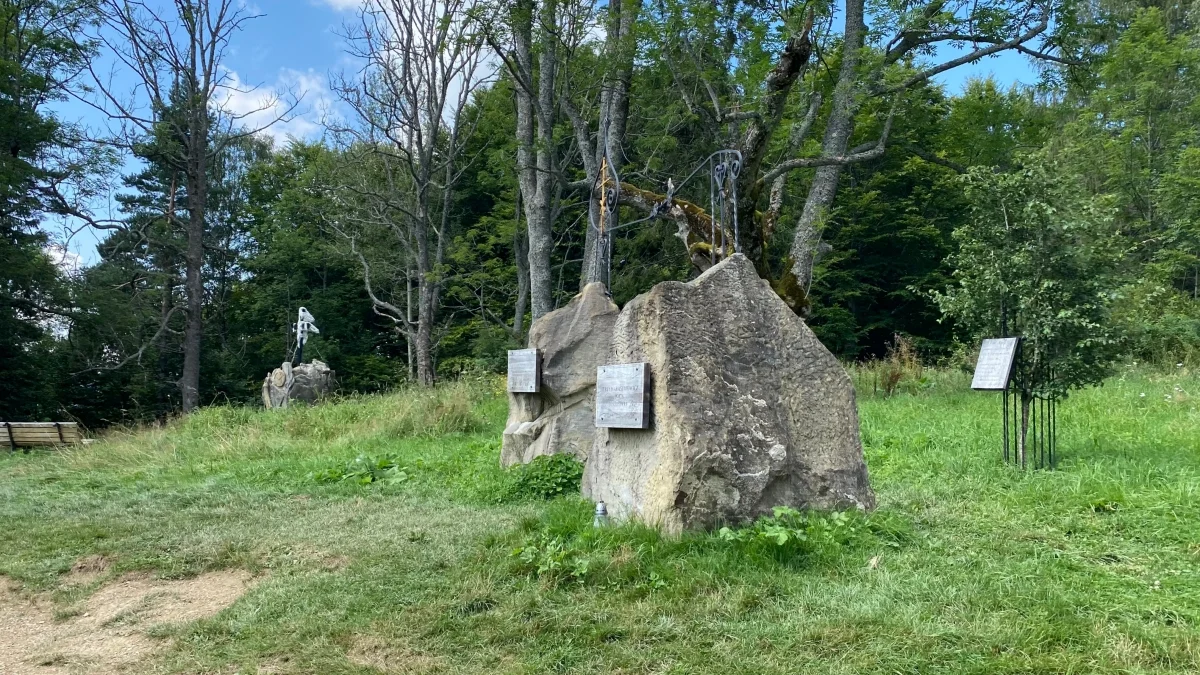 Rozpoczynając wędrówkę żółtym szlakiem z Przełęczy Wyżnej, kilkanaście metrów za parkingiem zlokalizowanym tuż obok Zajazdu u Górala „Bilanówka”, znajduje się pomnik Jerzego Harasymowicza, piewcy gór, którego prochy rozsypane zostały nad Bieszczadami w 1999 roku. Dwa głazy z lipowickiego kamieniołomu – jak dwa narody – zostały spięte odkutym w metalu motywem cerkiewnej bani i uważane są przez wielu za symboliczny grób poety oraz swego rodzaju bramę na najliczniej uczęszczany szlak w Bieszczadach. Na głazie umieszczono tablicę z fragmentem jednego z najpopularniejszych wierszy Harasymowicza „W górach jest wszystko co kocham”.