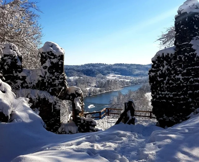 W połowie drogi między Załużem, a Manastercem znajdują się niezwykle malowniczo położone ruiny Zamku Sobień.