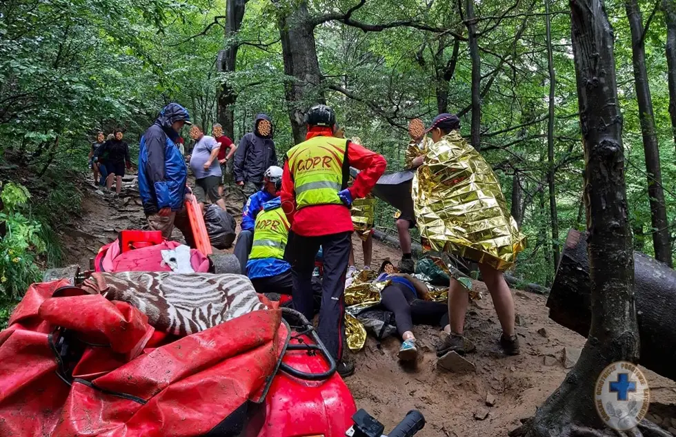 W godzinach popołudniowych Ratownicy zostali wezwani do pomocy na niebieski szlak prowadzący z Wołosatego w kierunku Tarnicy. W tym czasie nad Bieszczadami przeszła krótka a zarazem niespodziewana burza, która spowodowała, że na szlaku było mokro i ślisko.