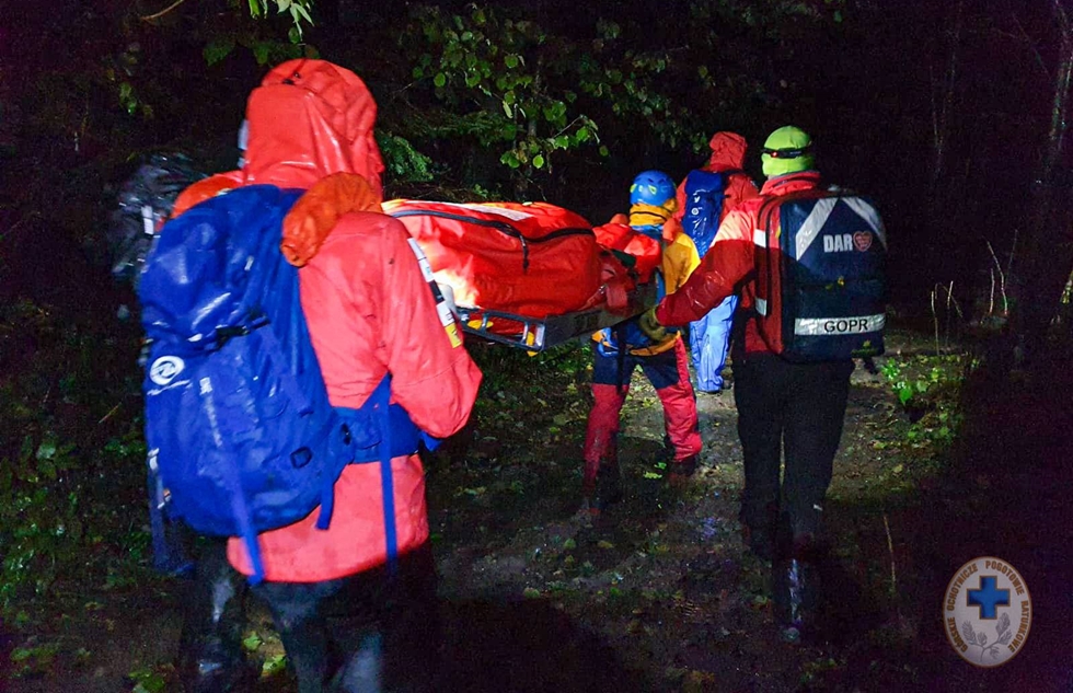 Transport Poszkodowanego quadem z powodu intensywnych opadów deszczu stał się niemożliwy, dlatego po zaopatrzeniu i zabezpieczeniu termicznym, mężczyzna został zniesiony przez Ratowników na noszach do miejsca w którym czekał już Zespół Ratownictwa Medycznego. W akcji ratunkowej wzięło udział 16 ratowników.