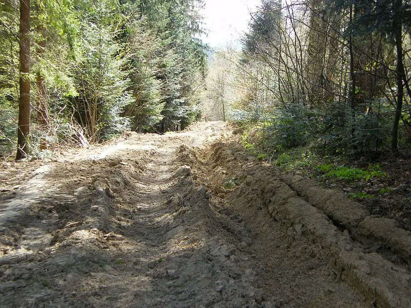 Na potrzeby gospodarki leśnej rozbudowywana jest sieć utwardzonych dróg w lasach, trwa zabudowa i regulacja cieków* oraz wycinka drzew w cennych przyrodniczo ekosystemach. Zabiegi gospodarcze powodują zanikanie stanowisk rzadkich, w tym chronionych gatunków, zmieniają warunki charakterystyczne dla lasów naturalnych, konieczne dla przetrwania wielu organizmów wrażliwych na działalność człowieka. Dojazd do miejsc wycinki związany jest z uszkadzaniem gleby.