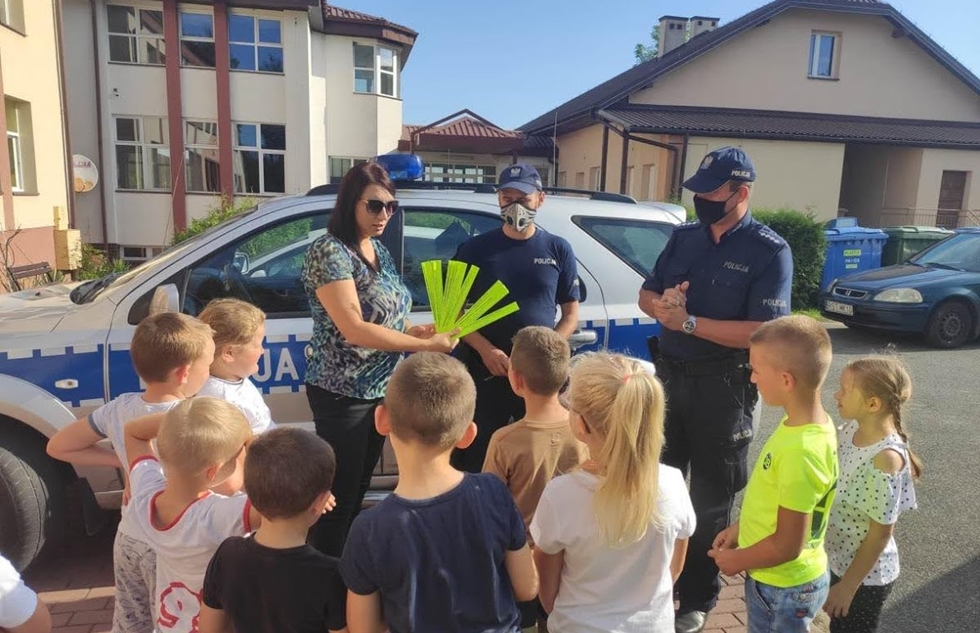 Każdy pierwszoklasista na zakończenie spotkania otrzymał element odblaskowy dzięki, któremu będzie bardziej widoczny na drodze.