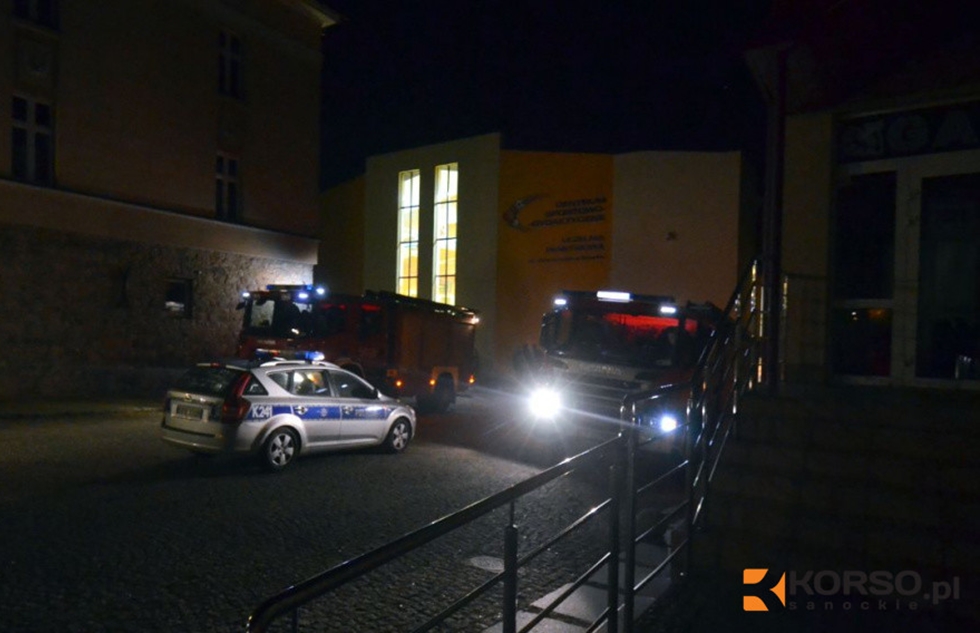 Dzisiaj o godz. 19:09 CPR Rzeszów poinformował wszystkie służby o podłożeniu niebezpiecznej substancji chemicznej w budynku Uczelni Państwowej w Sanoku. Uruchomiono straż pożarną, policję i pogotowie ratunkowe. Z jednostki PSP wyjechały 3 zastępy. Działania straży pożarnej polegały na zabezpieczeniu miejsca. Zarządca obiektu przeprowadził ewakuację budynku a konkretnie sali, w której aktualnie odbywały się zajęcia sportowe. Żadnej niebezpiecznej substancji nie ujawniono.