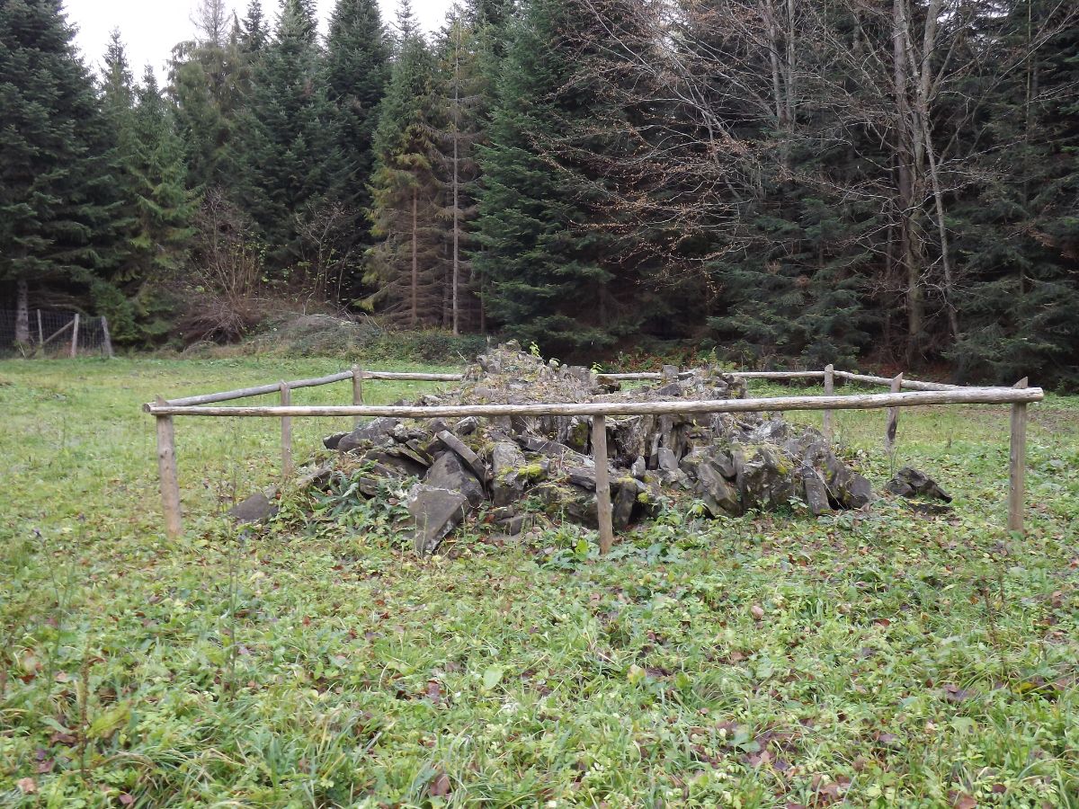 Pamięci 74 polaków bestialsko pomordowanych przez ukraińskich nacjonalistów. W tym miejscu stała leśniczówka, w której schronienia przed terrorem UPA dla swych rodzin szukali polscy leśnicy z doliny górnego Sanu. Wszyscy, wraz z leśniczym Franciszkiem Królem i jego rodziną, ponieśli śmierć w sierpniu 1944 roku.