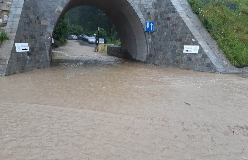 Około godziny 16.00 deszcz padał tak intensywnie, że droga wojewódzka nr 892 na wysokości Klasztoru w Komańczy zamieniła się w rzekę.