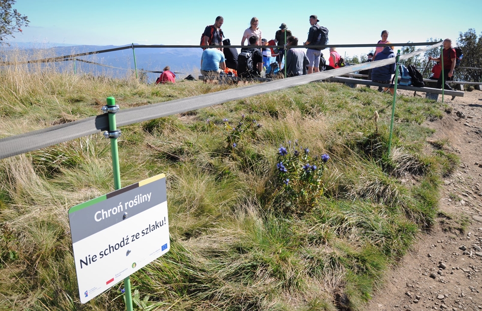 Prosimy nie schodźcie z kopuł szczytowych. Miejsca widokowe są wygrodzone barierami lub taśmami w celach ochronnych. Za nimi występują rośliny i gleba, które mamy obowiązek chronić. Nowe tablice informacyjne są jasne i czytelne. My nie możemy też być wszędzie. Samych szlaków pieszych mamy 140 km, a terenu prawie 30 tys. ha. Dla naszego wspólnego dobra bądźmy odpowiedzialni! Dwa pozytywne przypadki regeneracji darni roślinnej w załączeniu. Czy tzw. ”wydepczyska” i „wyleżyska” są ładniejsze? - apeluje BdPN.