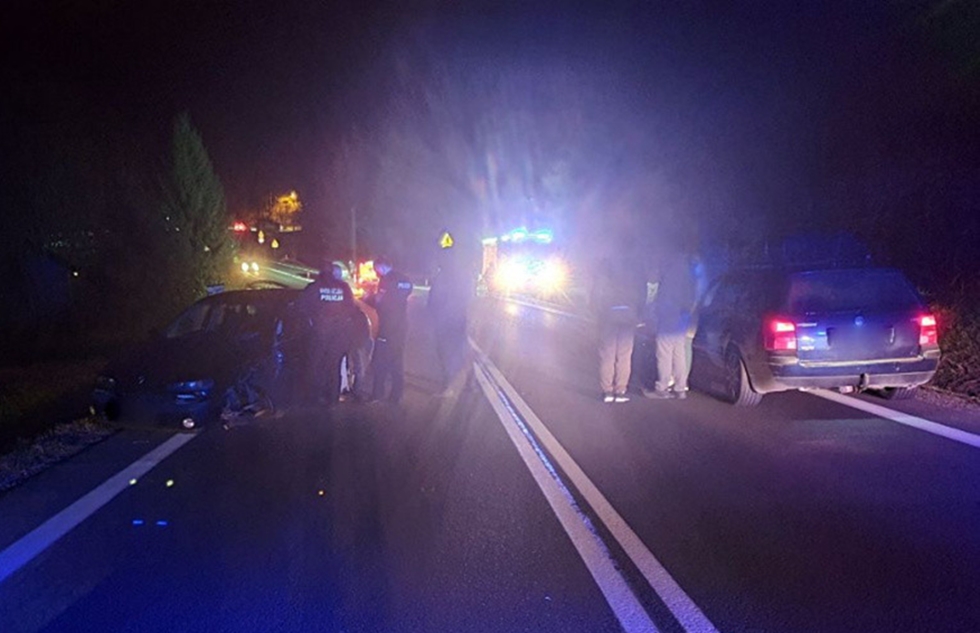 Kierujący samochodem osobowym marki VW Passat jadący w stronę Leska jechał prawidłowo swoim pasem, nadjeżdżająca z naprzeciwka kierująca samochodem marki Renault straciła panowanie nad pojazdem i w wyniku czego zjechała na przeciwległy pas, doprowadzając do zderzenia z VW.