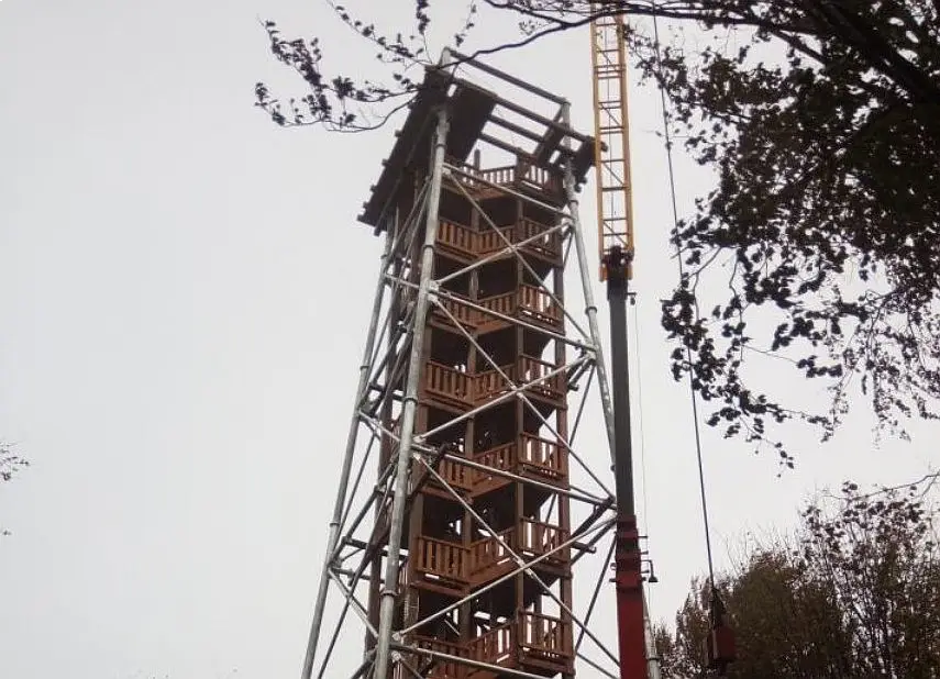 Chcemy Was poinformować, że wieża jest jeszcze w trakcie budowy i wejście na nią grozi niebezpieczeństwem. Dlatego, na razie, jest zakaz wchodzenia na nią i prosimy o respektowanie tego.