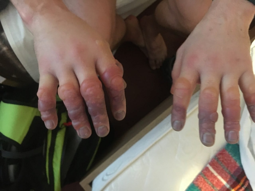 Byliśmy dobrze przygotowani, miałem drugie ciepłe rękawice, dodatkową odzież, herbatę w termosie z zapasem do samego końca. Wszyscy mieliśmy detektory. Do odmrożenia doszło z powodu zlekceważenia pierwszych objawów, to mój błąd. Wydawało mi się skoro idę do przodu, jestem cały czas w ruchu i jest mi ciepło to jest ok. Czułem lekkie odrętwienie ale nie zimno. I to był moment na wyjęcie ciepłych rękawic. Potem było już za późno. Mimo to walczyłem do końca bo miejsca na skuterze potrzebowali inni. Jeśli chodzi o całe wydarzenie to wszystko szło dobrze do szczytu Halicza.