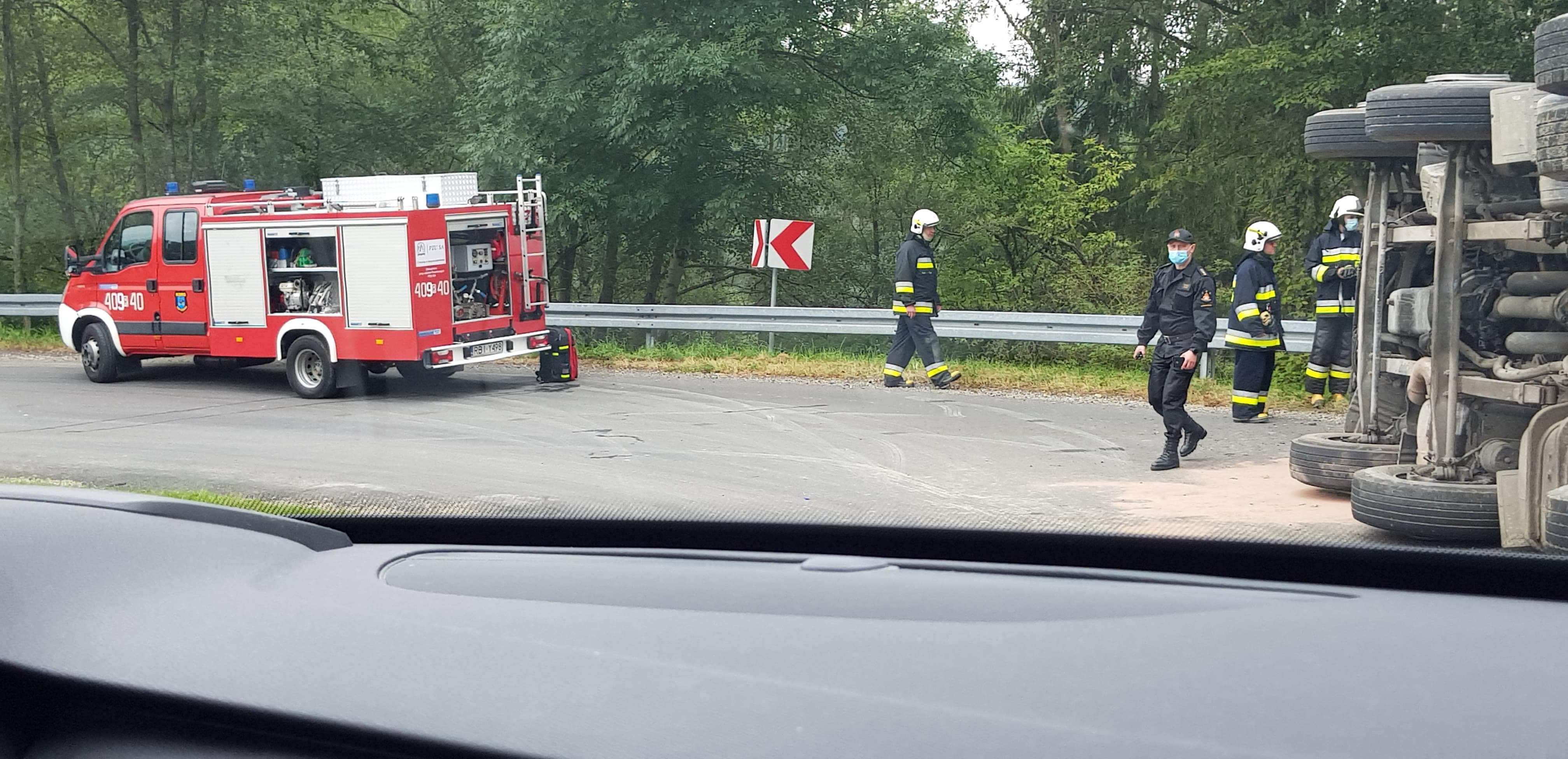Kierowca ciężarówki podczas jazdy serpentynami nie zapanował nad pojazdem. Samochód przewrócił się.