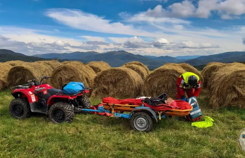 W godzinach porannych Ratownicy z Sanoka zostali wysłani w okolice szczytu Kabajka nad Polańczykiem. Pracujący tam pilarz złamał nogę, ponadto miał raną ciętą . Po zaopatrzeniu poszkodowanego przez Ratowników Medycznych, Ratownicy GOPR przy pomocy quada i teleszki przetransportowali pana do miejsca postoju karetki.