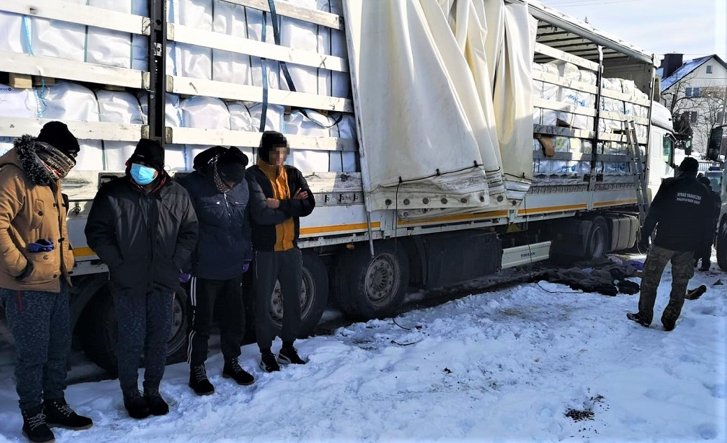 Mężczyzna był zaniepokojony ludzkimi odgłosami dochodzącymi z naczepy. Na miejsce wezwano mundurowych z Bieszczadzkiego Oddziału Straży Granicznej z Sanoka oraz funkcjonariuszy KAS. Po otwarciu naczepy mundurowi ujawnili czterech pełnoletnich mężczyzn, dwóch Pakistańczyków oraz dwóch Afgańczyków.