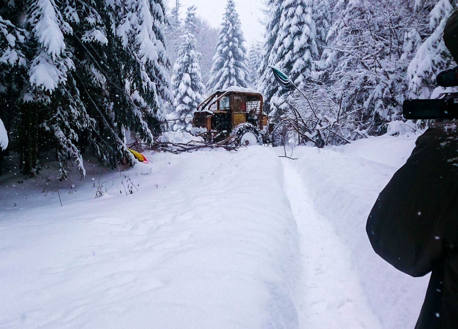 Ciągnik przecierający trasę na drodze nr 7 nie wjechał na teren obozowiska protestujących, co jest zarejestrowane na filmie będącym w zasobach Nadleśnictwa. Obecny na miejscu strażnik leśny jasno tłumaczył protestującym, jaki jest cel odśnieżania. Ten fakt również jest zarejestrowany.