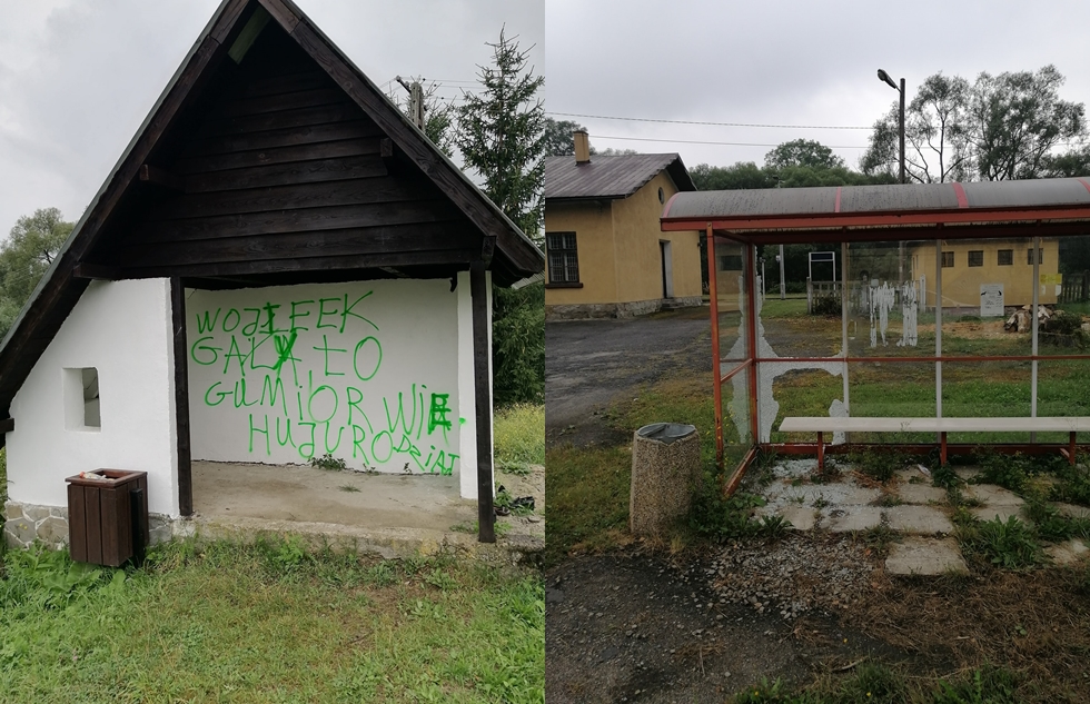 W miejscowości Szczawne wandal zbił szybę na przystanku autobusowym, natomiast w Smolniku zniszczono elewację wiaty przez namalowanie wulgarnych napisów.