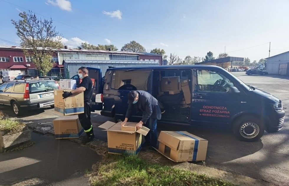 Wobec wysiłkom ratowników medycznych obojętni nie pozostają strażacy. Druhowie Ochotniczej Straży Pożarnej w Niebieszczanach dostarczają środki ochrony indywidualnej przekazane od Wojewody Podkarpackiego prosto z magazynu w Rzeszowie. Takie działania są ogromnym wsparciem dla medyków.