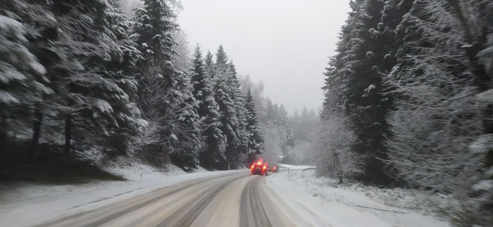 Tymczasem własnie ostatniego dnia roku śnieg w Bieszczadach się pojawił. Zaskoczył kierowców i przede wszystkim drogowców. Droga wojewódzka 896 Ustrzyki Górne - Ustrzyki Dolne nie jest odśnieżona! Samochody na szczęście jeżdżą wolno. Oby nie było wypadków!